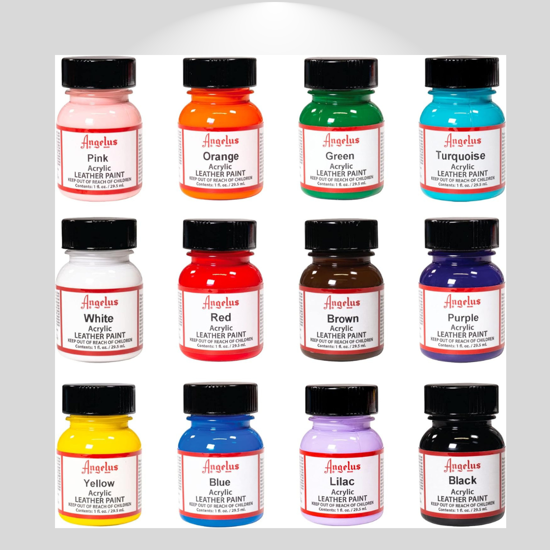 Angelus Acrylic Leather Paint, Best Sellers Kit, Flexible Paint For Shoes, Sneakers, Leather, Canvas, Furniture, and More – 12 Colors (1 oz Each)